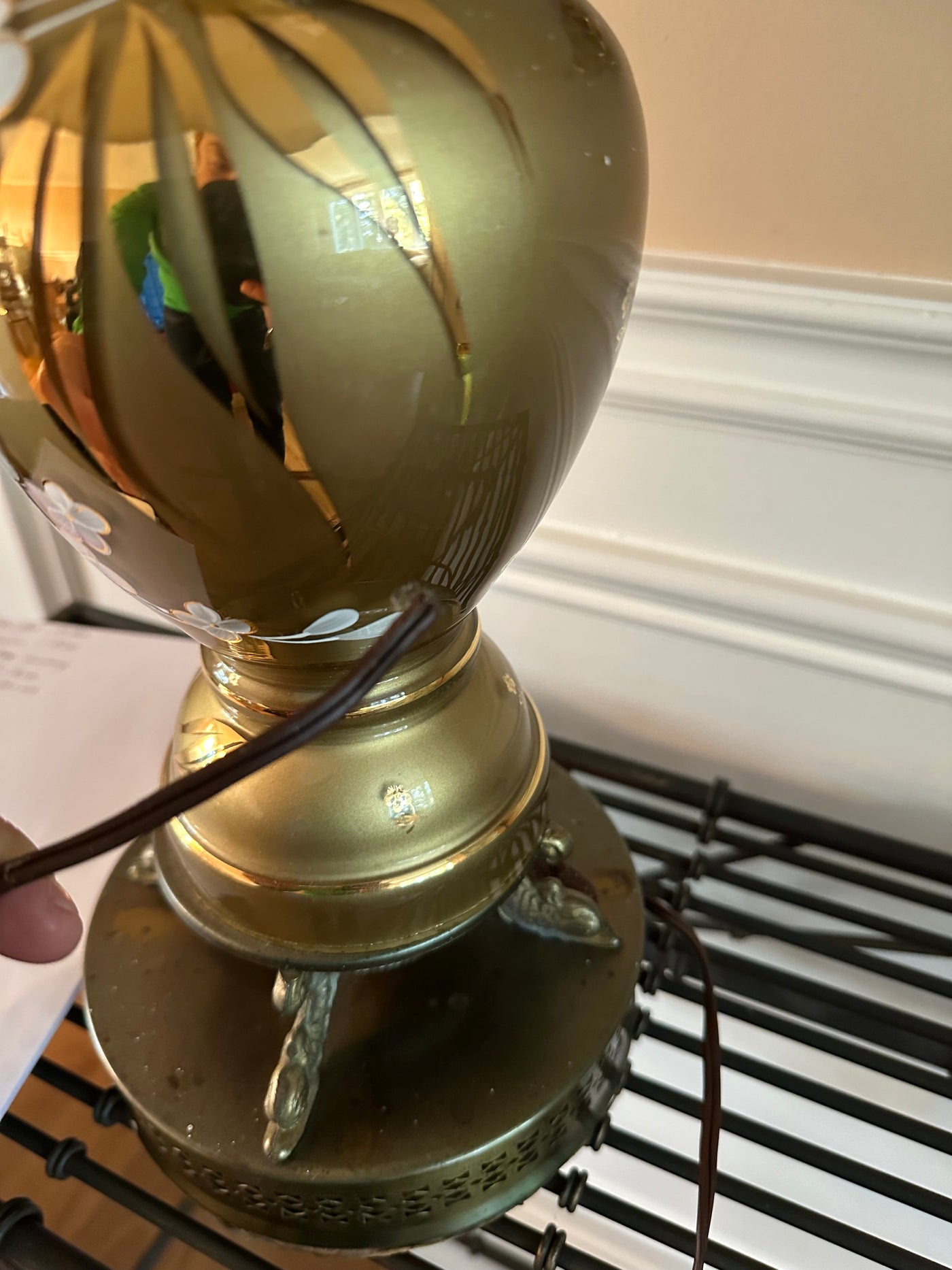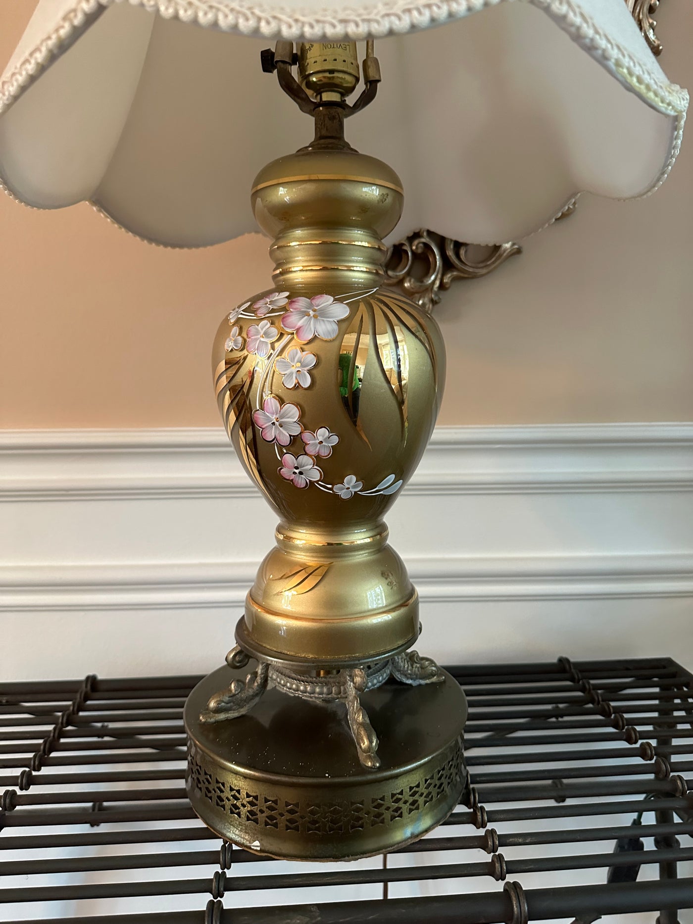 Lot as pictured. Measures 27"H. Cord has been cut from plug. Will need to be rewired. Original parts are all there.