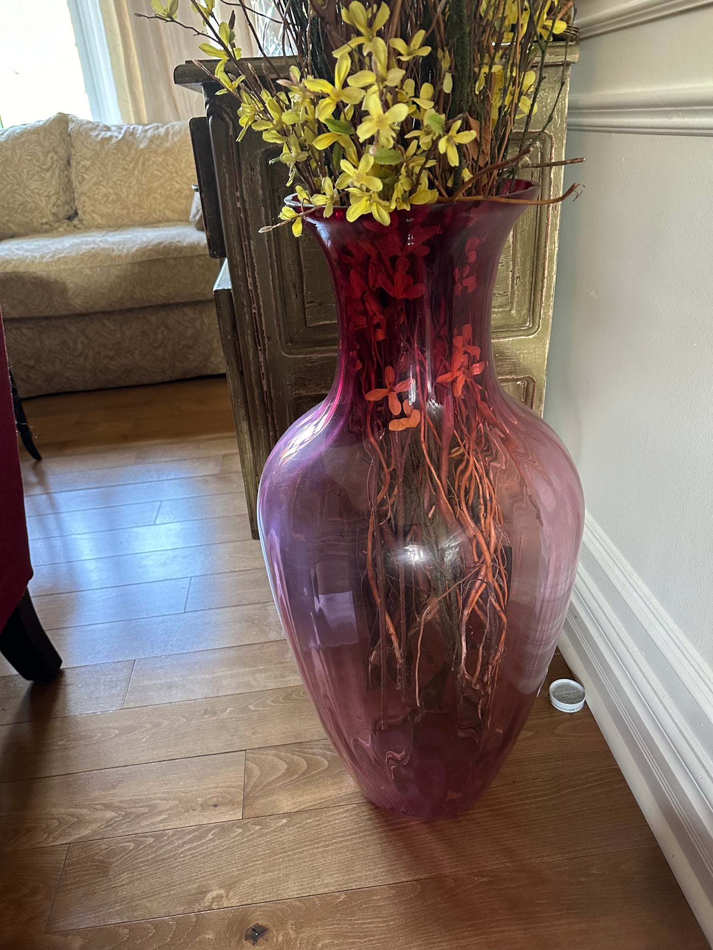 Lot as pictured. Measures 16”D x 31”H. Includes faux flowers