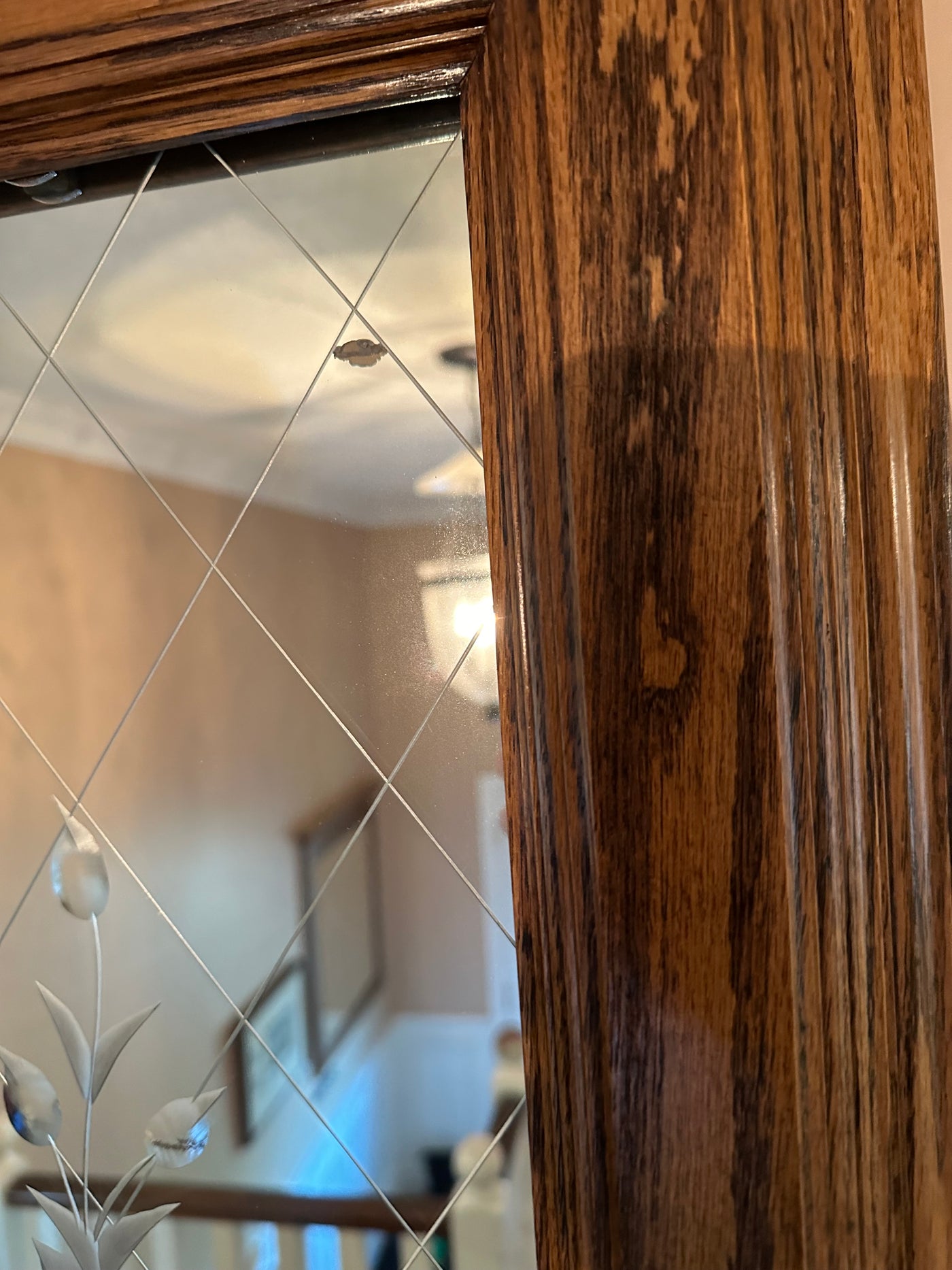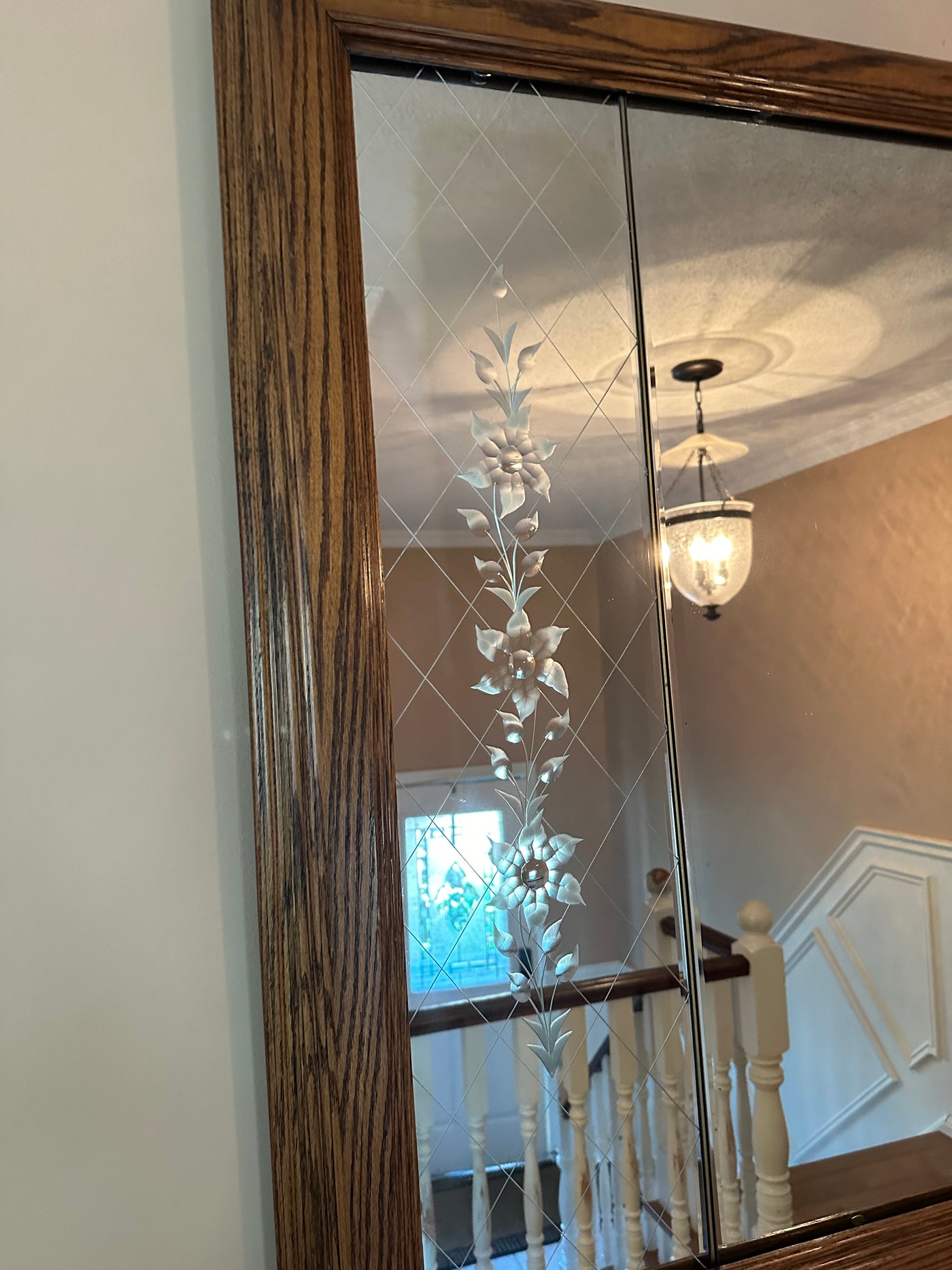 Lot as pictured. 67 x 42” there is some age marks on the mirror face as shown in photo.