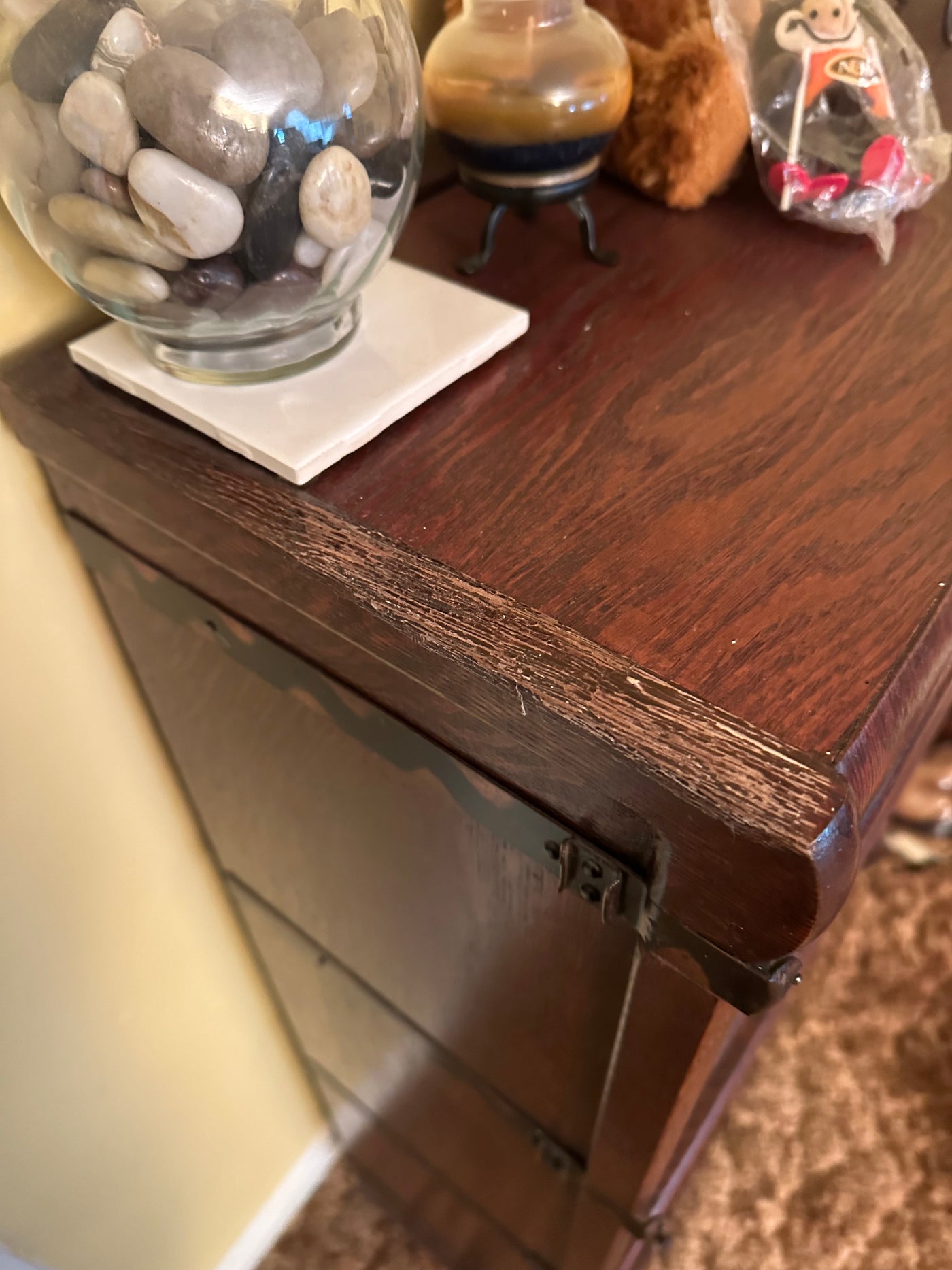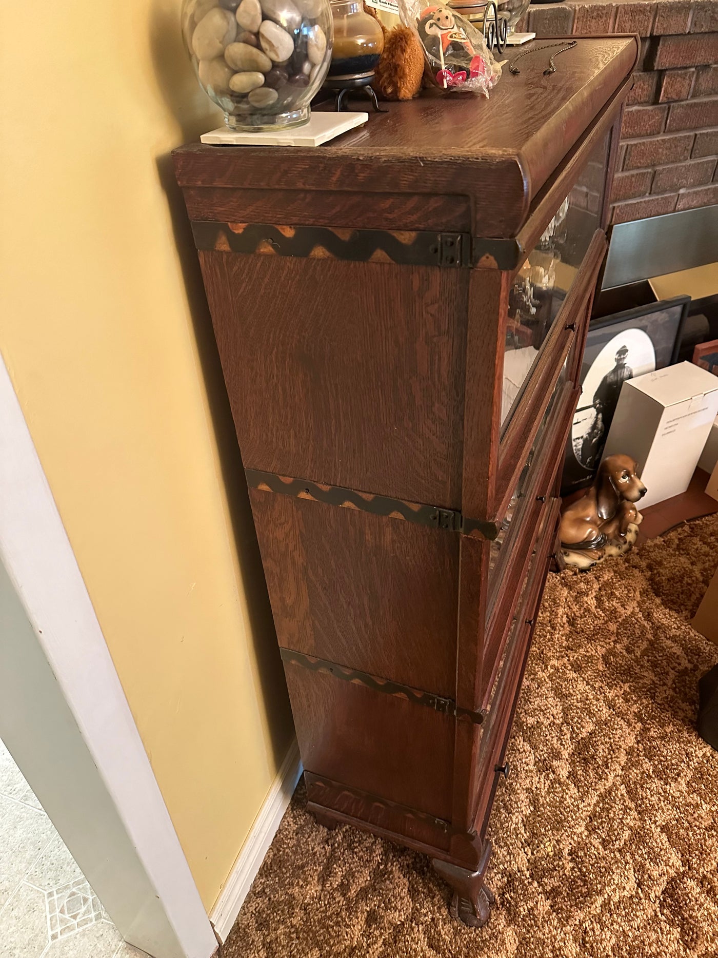 Lot as pictured. Measures 34 x 12 x 46”H. Some minor age wear on top as pictured