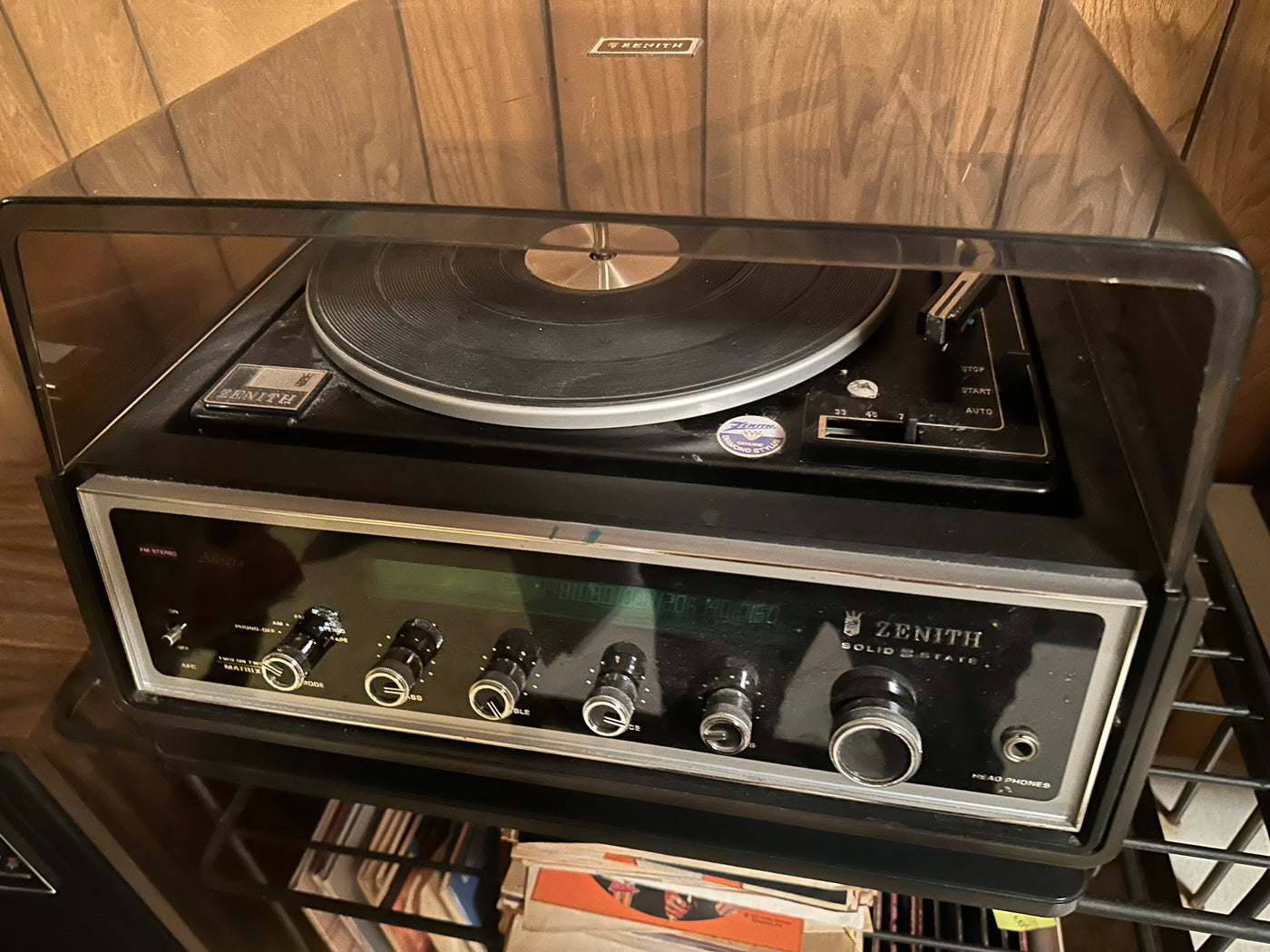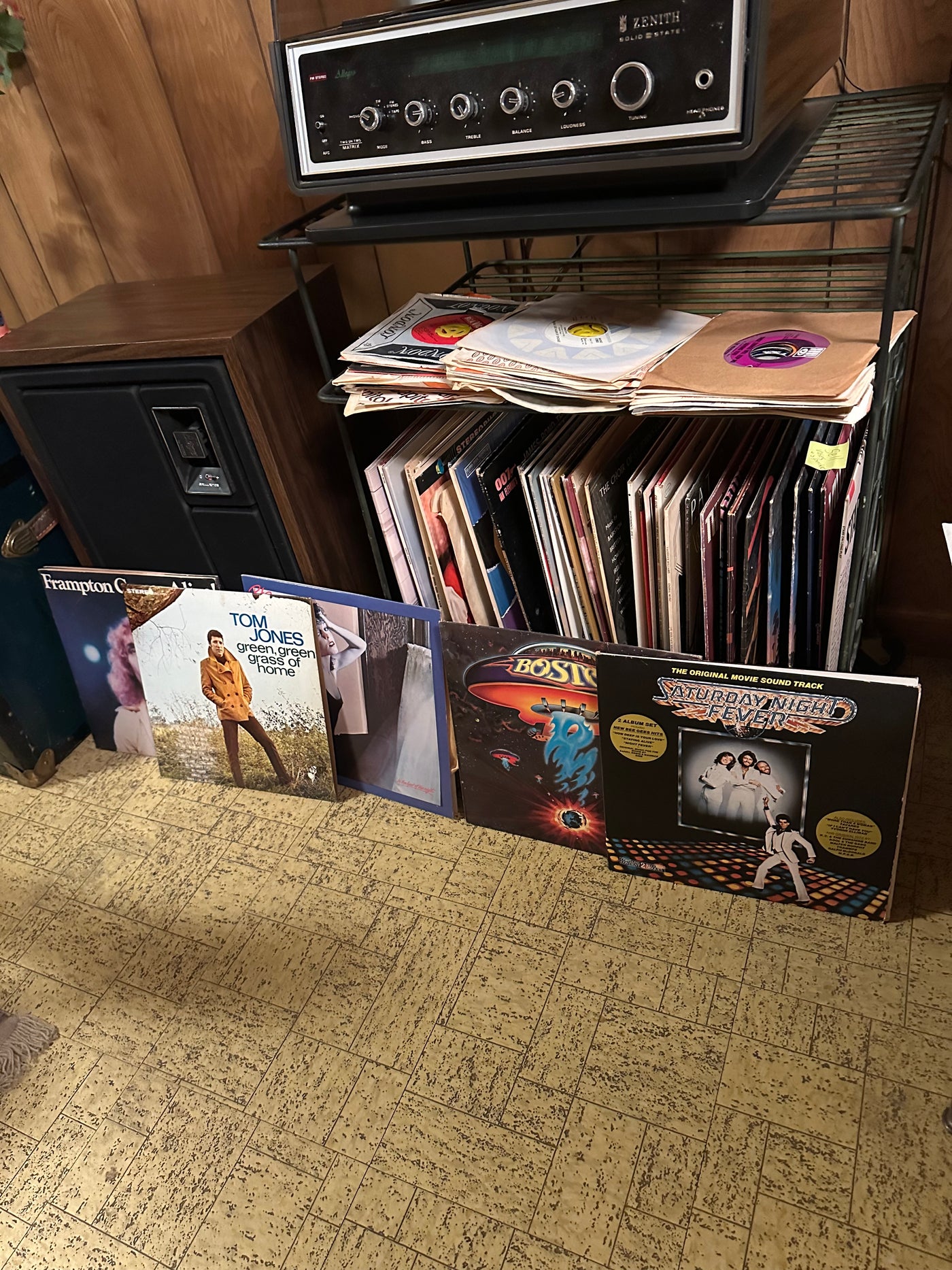 Lot as pictured. Record player seems to be seized but powers on. Lot includes player, vinyl, speakers, record holder rack. ** Pick up for this sale is Saturday Nov 23rd from 9am-11am. Please do not purchase if you cannot make this prearranged pick up time. All purchases not picked up during this time will be forfeited without refund **